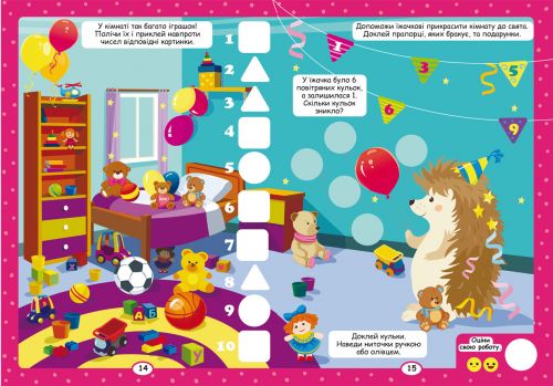 Яскраві прописи-тренажер спрямовані на вивчення математики. Усередині багато яскравих ілюстрацій та цікавих завдань, які малюкові потрібно доповнити. Допоможуть вивчити цифри та навчать рахувати. Також у комплекті є наклейки. Відмінно підійде для найменших.