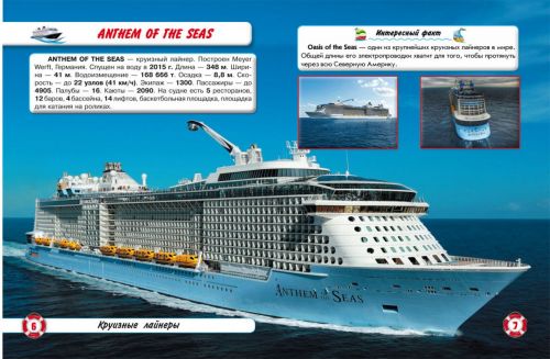 Яскраві ілюстрації та короткі, але дуже інформативні опису дозволять скласти уявлення про зовнішній вигляд і основні характеристики кораблів .. Представлені на сторінках книги цікаві факти розширять ваші знання історії розвитку суднобудівництва і познайомлять з кораблями рекордсменами. Тверда обкладинка. 46 сторінок.