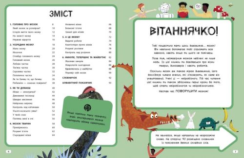 Із повної мізків книжки дитина довідається про те, як влаштовано людський мозок, як він керує тілом, що відбувається під час сну. Є тут і більш каверзні запитання. Наприклад, чи мають рослини мізки? Яким був мозок у тиранозавра? У видатних учених мозок більший, ніж у звичайних людей? Чи може штучний інтелект замінити людський мозок? І автор не просто дає потрібні відповіді, ай пропонує, як справжнім ученим, багато тверджень перевірити на собі.