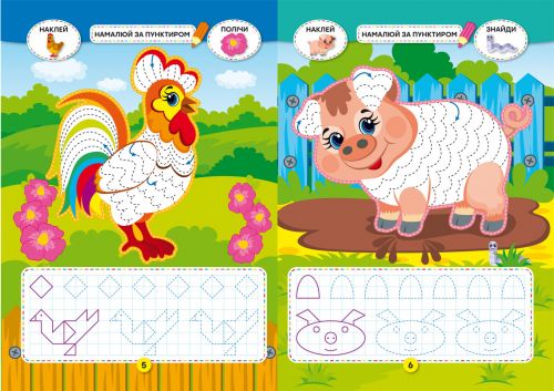 У цій книжці стільки цікавого й корисного! Проводячи лінії по пунктиру, готуйте руку дитини до письма. Вирізаючи та наклеюючи, розвивайте дрібну моторику. Відшукуючи сховані предмети, тренуйте спостережливість та пам’ять. Рахуючи картинки, опановуйте лічбу. Виконуючи завдання та граючись, виховуйте креативного малюка. На сторінках книжки ви знайдете 40 наліпок, розвивальні розписи, 4 іграшки та ігровий лабіринт.