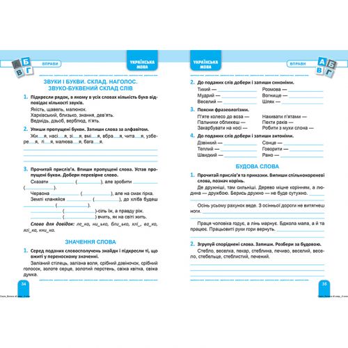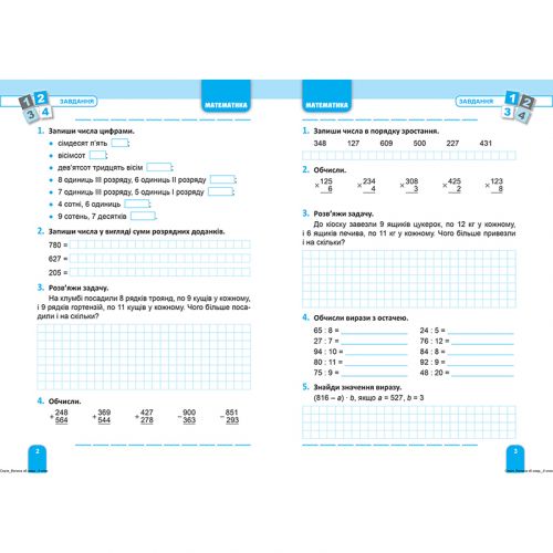Дана книжка призначена для вдосконалення учнями початкових класів набутих під час навчання вмінь і навичок з математики, української та англійської мов. Тренажер містить велику кількість вправ з основних тем шкільного курсу 4 класу. 80 сторінок. В мʼякій обкладинці.