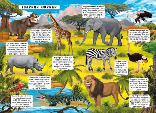Нашу планету населяють безліч дивовижних, дивних і прекрасних істот. Звірі і птахи, комахи і риби, змії і ящірки – на сторінках цієї книги маленькі читачі зустрінуться з мешканцями всіх континентів – від спекотних пустель Австралії до снігових рівнин Євразії. Тверда обкладинка. Мова: український.
