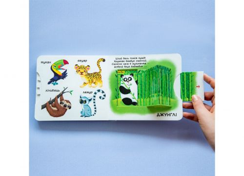 Книга з механізмами “Тварини: дізнавайся, грай, крути, штовхай”. У книзі є рухомі елементи та багато яскравих, гарних ілюстрацій з тваринами. З книгою можна знайомитися з тваринами, відгадувати загадки та читати віршики. Має дуже незвичний вигляд і точно сподобається дитині. Допоможе розвивати уяву, дрібну моторику, логічне мислення. Виготовлено з якісних та безпечних матеріалів.