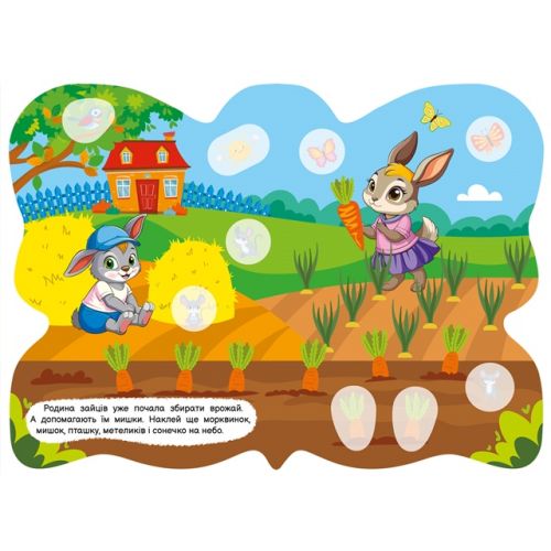 На сторінках даної книжки малюки зустрінуть улюблених тваринок і за допомогою наліпок поринуть разом із ними в дивовижні пригоди. Також яскраві наліпки допоможуть дітям потренувати дрібну моторику, розвинути увагу, уяву, логічне мислення та посидючість. В книжці 8 сторінок. В мʼякій обкладинці.