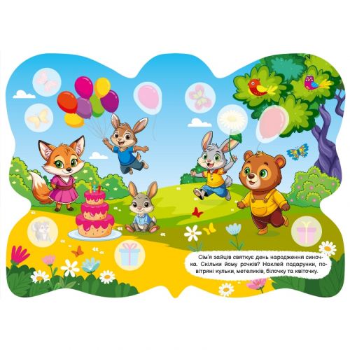 На сторінках даної книжки малюки зустрінуть улюблених тваринок і за допомогою наліпок поринуть разом із ними в дивовижні пригоди. Також яскраві наліпки допоможуть дітям потренувати дрібну моторику, розвинути увагу, уяву, логічне мислення та посидючість. В книжці 8 сторінок. В мʼякій обкладинці.
