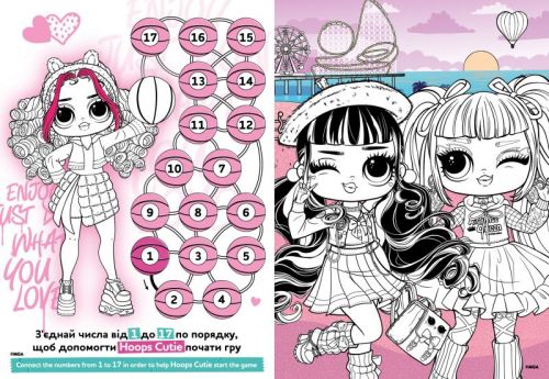 Комплектація: Що всередині? – 16 яскравих сторінок формату А4 (21х29 см) з розмальовками, завданнями, простором для малювання та кольоровими стікерами для самостійного використання; – активіті-формат, що залучає дитину до розв’язання логічних завдань, творчих вправ і креативних ігор; – захоплива подорож із улюбленими героїнями L.O.L., які надихають і мотивують. Зверніть увагу! Кольори можуть незначно відрізнятися від показаних на зображенні!