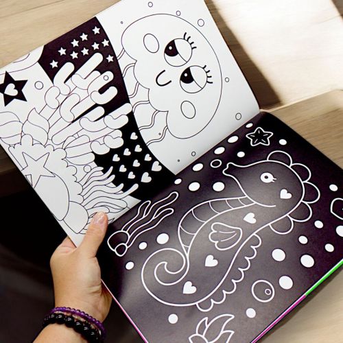 Спробуйте цікавий новий вид творчості з книгами-розмальовками з наліпками “Neon Stickers book”. У цій серії поєднані улюблені заняття малюків – малювання та приклеювання наліпок. Тут можна розфарбовувати цікаві малюнки та прикрашати їх яскравими стікерами. Такі картинки вирізняються з поміж інших і однозначно піднімуть настрій. У книжечці 16 сторінок з картинками для розфарбовування та понад 500 стікерів.