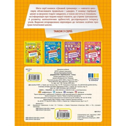 Книжка: “Цікавий тренажер Додавання, віднімання. 4 клас”