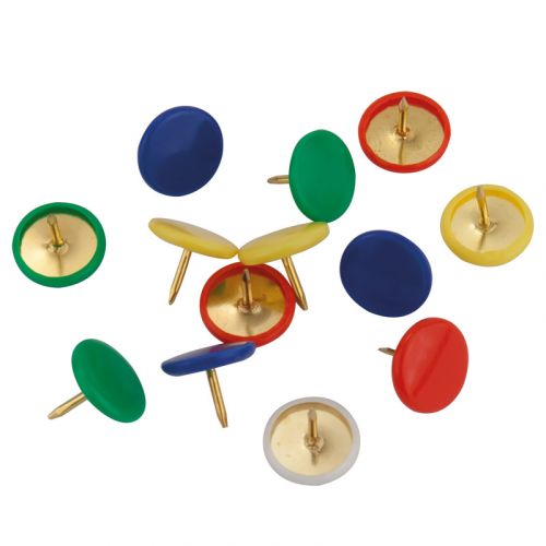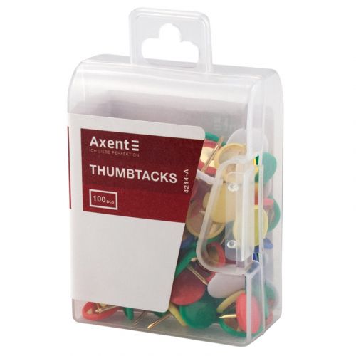 Кнопки призначені для фіксації інформації на пористій поверхні, перш за все пробкових або тканинних дошок. Кнопки мають пластикове покриття шляпки. Гострота і міцність стрижня кнопки забезпечують легку надійну фіксацію. 100 шт. в пластиковому контейнері.