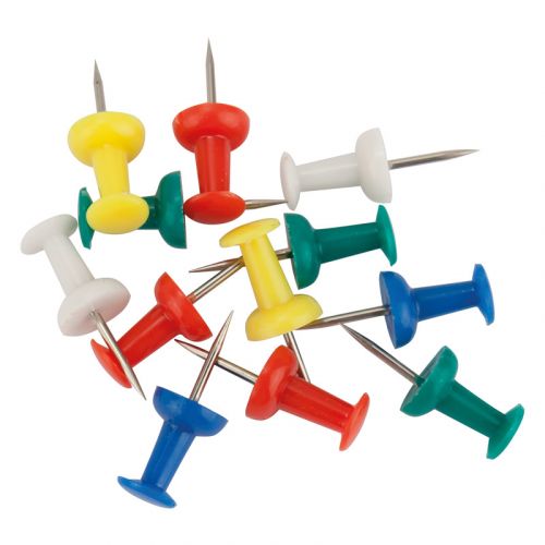 Кнопки-цвяшки призначені для фіксації інформації на пористій поверхні, перш за все пробкових або тканинних дошок. Кнопки мають продовгувату кольорову пластикову шляпку. Гострота і міцність стрижня кнопки забезпечують легку надійну фіксацію. Довгаста форма шляпки дозволяє зручно тримати кнопку в руці. В упаковці 30 шт.