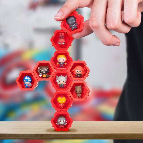 Набір створений спеціально для шанувальників комыксів та кінофільмів Marvel Avengers. Кожен герой прикріплений до свого шестикутного блоку. Висота PODS (блоку) – 4,5 см. Їх можна з’єднувати між собою, комбінувати у різному порядку і розміщувати на полиці або стіні. 12 героїв у колекціїї.