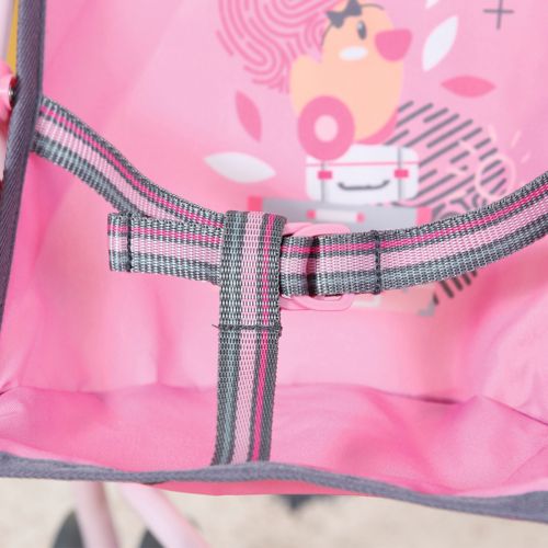 Яскрава складна металева коляска-тростина з малюнком на підкладці. Підійде для гри з ляльками та невеликими мʼякими іграшками. Підкладка знімається, за потреби можна випрати. Каркас металевий, а коліщатка та ручки пластикові. Розмір коляски – 54 х 41 х 26 см, у зібраному вигляді – 62 х 12 х 12 см.