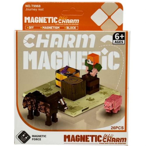 Магнітний конструктор “Magnet World” за мотивами популярної гри Майнкрафт (Minecraft). Порадує фанатів даної гри й не тільки. В комплекті 26 різноманітних деталей. Така іграшка є веселою можливістю поглянути на те, на що здатні магніти та як гарно деталі тримаються між собою. Ігри з конструктором чудово розвиватимуть дрібну моторику, увагу, уяву та образне мислення малюка. Виготовлено з якісних та безпечних матеріалів. Для дітей від 6 років.