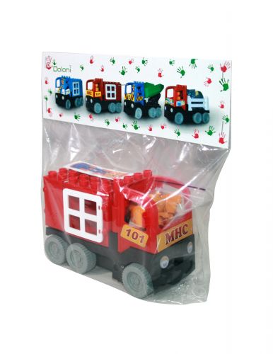 Пластиковий яскравий конструктор буде цікавим подарунком дитині. Деталі конструктора досить таки великі. Можна зібрати пожежну машину. Виконаний з якісного пластику. Для дітей від 3-х років.