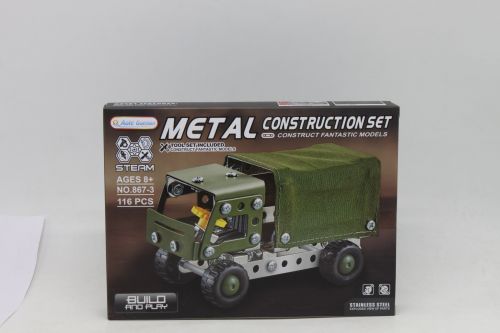 Металевий конструктор-головоломка, з яким можна зібрати військову вантажівку з брезентом. Складання такого конструктора обовязково принесе задоволення дитині та допоможе у розвитку логічних здібностей та навичок дрібної моторики. У наборі є всі необхідні деталі та інструменти для складання. Для дітей віком від 8-ми років.