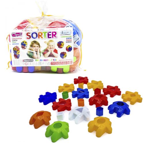 Ігровий набір з великими деталями, який можна використовувати як конструктор, сортер, пазл, мозаїка. Виготовлений конструктор із якісної міцної твердої пластмаси, не містить токсичних барвників та добавок. У наборі 24 елементи. Великі деталі. Розвиває у дитини мислення, увагу, посидючість, уяву, фантазію, дрібну та велику моторику, точність та координацію рухів.
