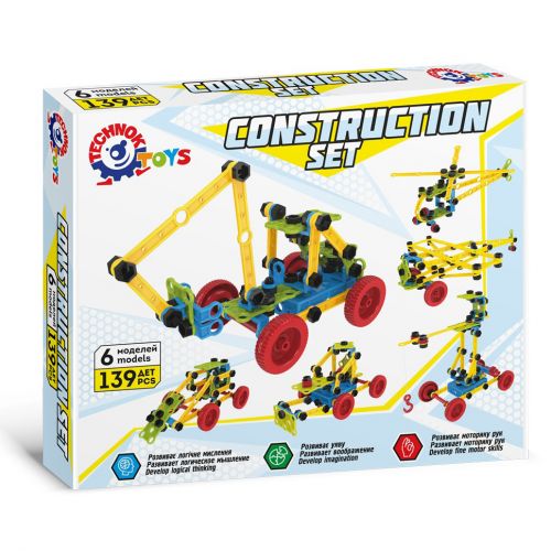 Пластиковий конструктор на 139 деталей. Можна збирати різні машинки і літаки. Також в наборі є нитка, яку можна пріклеплять до крану.