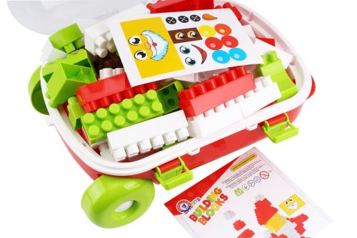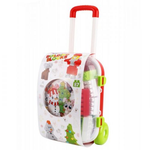 Ігровий набір конструктора у валізі стане чудовим подарунком дитині. Усередині є 87 великих деталей та інструкція з картинками для збирання фігурок. З деталей можна зібрати різноманітні фігурки у новорічній тематиці. Допомагає розвивати посидючість, логіку, фантазію, дрібну моторику. Конструктор з великих деталей підходить для дітей віком від 3-х років. Запакована в зручну валізку на коліщатках, з висувною ручкою, яку можна взяти з собою на прогулянку або в поїздку. Виконано із міцного та безпечного пластику.