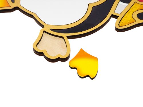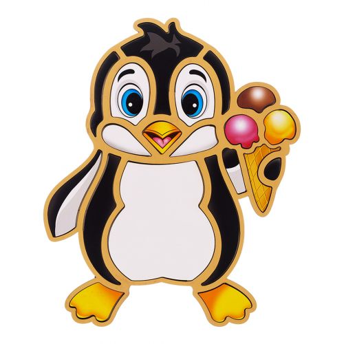 Контурний пазл – вкладиш добре розвиває дрібну моторику рук, логічне мислення та візуальне сприйняття дитини. Рамка виконана у вигляді милий пінгвін. Головна мета – знайти для всіх елементів відповідні отвори на рамці-основі. Розмір основи 31,5 х25 см.