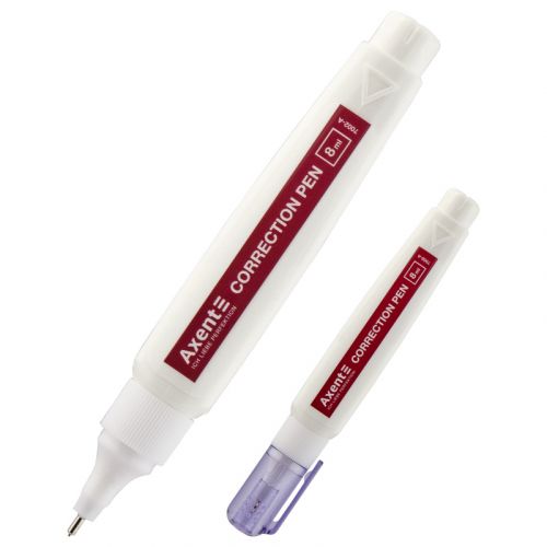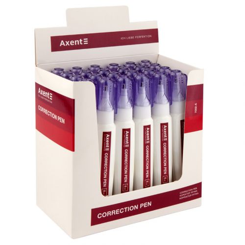 Коректор-ручка Axent зручний і економічний, дозволяє з мінімальними витратами рідини швидко і точно замінити як одну букву, так і цілий рядок, при цьому його дуже зручно тримати в руці. Кульковий механізм коректора акуратно наносить рідину на найменші ділянки. Корпус виконаний з еластичного тонкостінного пластику. Високоякісні білі пігменти не жовтіють і не сіріють навіть з часом. Не містить токсичних речовин, не має дратуючого запаху. Не має згустків і грудочок, один шар повністю закриває текст без повторного нанесення. корегуючий шар утворює гладку плівку, на якій можна корегувати написи. Добре переносить низькі температури (до -30 С), при тривалому зберіганні максимально довго не загусає. Швидко сохне. Незамінний помічник в офісі, школі і вдома.