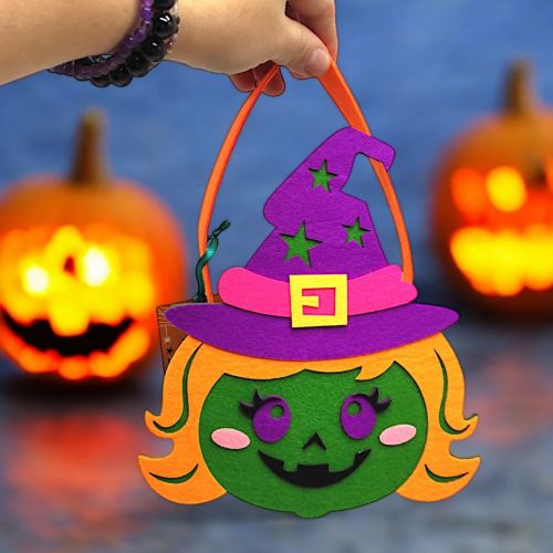 Мила сумочка з фетру виконана у стилістиці Хелловіну. Матеріал виробу цупкий та добре тримає форму. Частини сумочки надійно зʼєднані між собою за допомогою клею. Розмір сумочки (з ручкою) – 23х5,5х17,5 см. Такий аксесуар чудово доповнить святковий образ та створить відповідну атмосферу.