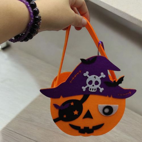 Мила сумочка з фетру виконана у стилістиці Хелловіну. Матеріал виробу цупкий та добре тримає форму. Частини сумочки надійно зʼєднані між собою за допомогою клею. Розмір сумочки (з ручкою) – 23х5,5х19 см. Такий аксесуар чудово доповнить святковий образ та створить відповідну атмосферу.