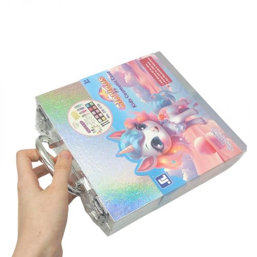 Перетвори гру у справжній б’юті-салон разом з чарівним набором “Блискучий єдиноріг”! У яскравому чемоданчику з єдинорогом малеча знайде все необхідне для створення яскравого образу: тіні, блиски, лаки для нігтів, наклейки та аксесуари. Безпечна дитяча косметика на водній основі. Яскравий чемоданчик з дзеркалом для зручної гри. Ідеально для рольових ігор та розвитку фантазії. Легко змивається водою. Підходить для дітей від 5 років. В комплекті присутньо 10 кольорів тіней для повік, 4 кольори лаків для нігтів, 1 пилка для нігтів, накладні нігті та клейкі смужки, наклейки для дизайну, аплікатори для тіней, дзеркало у валізці. Рекомендовано для дітей від 5 років.