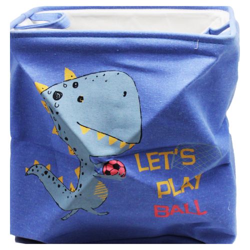 Кошик для ігор. Кошик-скринька стане чудовим сховищем для іграшок або будь-чого іншого. Має яскравий дизайн з веселим динозавром, що грає в м’яча і надписом “Давай зіграємо в м’яча”. Дуже корисна, зручна і яскрава річ. Виготовлено з якісних та безпечних матеріалів. Без кришки, з двома ручками. Розміри: 34х27х35см.