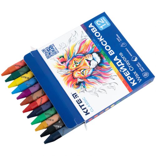 Кольорова воскова крейда Kite Classic в яскравій картонній упаковці. Набір має яскраву палітру Крейда яскрава та насичена, має однорідну текстуру, не кришиться. Малює яскраво без натиску. Воскова крейда легко заточуються. Вона призначена для малювання на папері. Дитячу крейду приємно та зручно тримати в руках (довжина виробу 90 мм, діаметр – 8 мм.), корпус захищений папером – не мажеться і не вислизає з рук. Воскова крейда зроблена з натурального воску з додаванням фарб. Крейда має нейтральний запах. Продукція пройшла гігієнічні дослідження і не містить шкідливих речовин. Рекомендовано дітям дошкільного та шкільного віку.