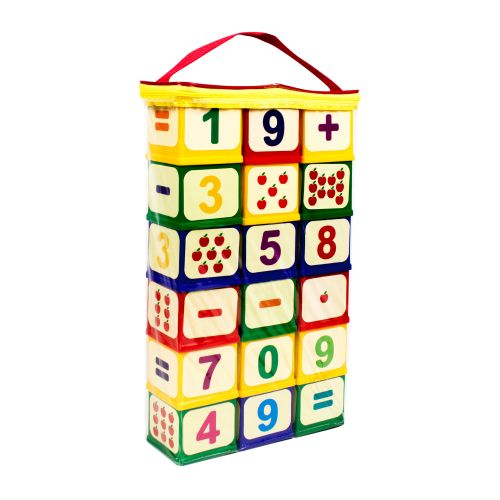 Кубики “Арифметика”. У комплекті 18 кубиків. Великі, кріпляться один до одного. Виконано з якісного пластику.