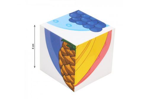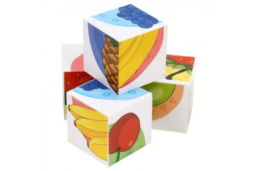 Набір складається з 4 яскравих різноколірних кубиків (4 х 4 см). На кожній грані кубика фрагменти зображення фруктів, які потрібно скласти в один малюнок. Розвиває логічне мислення, моторику пальців, фантазію.