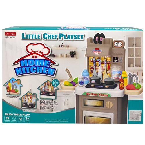 Іграшка “Моя Весела Кухня” це можливість зацікавити дитину до хатніх обовʼязків та привити любов до готування. Комплект складається з різних побутових елементів таких як, посуд, лопатки, кастлюйки та продуктів, та найголовніше – власна міні кухня, щоб дитина могла більше поглибитись у гру. Іграшка світиться та має звукові ефекти такі як музику, а також для реалістичномті є елементи в які можна залити воду. Виконаний з якісних та міцних матеріалів, буде чудовим подарунком дитині. Рекомендовано для діток від 3 років.