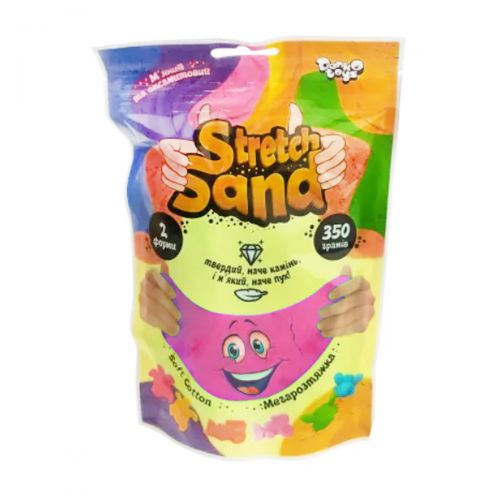 Кінетичний пісок “Stretch Sand”, 350 г. Такий пісок прекрасно тримає будь-яку форму, швидко розпадається при необхідності, а його будова відрізняється одночасно пористістю і міцністю. За відчуттями такий пісок нагадує сирий морський пісок, тільки він без води, не прилипає до рук, не забруднює одяг.