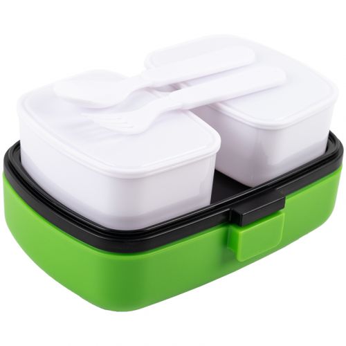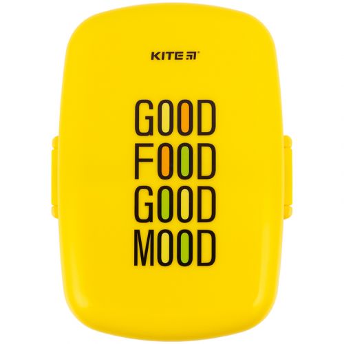 Ланчбокс Kite зроблений з харчового пластику. Бокс призначений для зберігання ланчу. Ланчбокс розділений на дві частини, містить всередині 2 додаткові окремі ємності, які закриваються; має пластикову ложку та виделку. Він щільно закривається. Ланчбокс також можна використовувати як лоток для зберігання їжі в холодильнику. Об’єм 1150 мл.