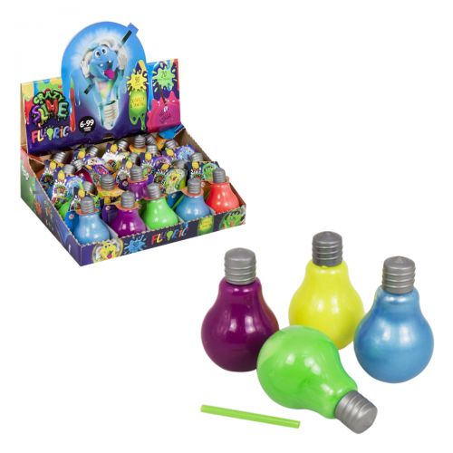 Лизун-соплі “Crazy Slime Fluoric: Лампочка”. Складається з вузького, рідкого матеріалу. Можна надувати (трубочка в комлекті). Має приємний солодкий запах, світиться в темряві. Різні колір. Ціна з баночку (20 в коробці).