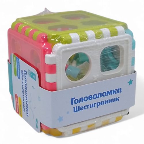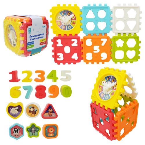 Логічна гра-сортер “Головоломка Шестигранник” – це розвиваюча іграшка з безліччю функцій. Грані містять отвори у формі геометричних фігур та цифр для сортування, а також циферблат на одній із сторін, що дозволяє вивчати час. Відмінний вибір для розвитку моторики, логіки та перших знань про числа та час!