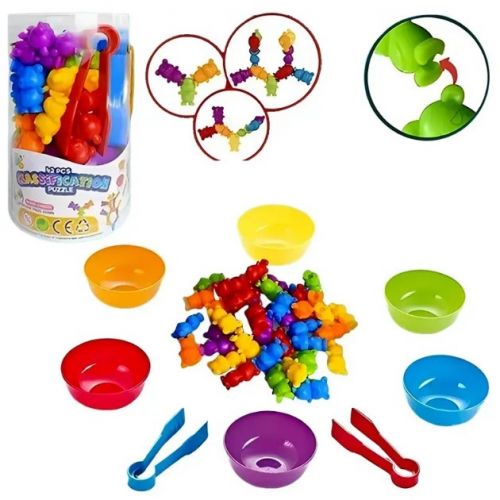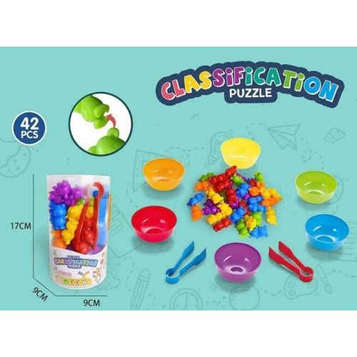 Комплектація: 42 фігурок для сортування 6 кольорових тарілочок 2 пари щипців