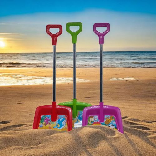 Дитяча лопатка великого розміру, довжиною 70 см, призначена для ігор із піском та снігом. Вона оснащена металевою ручкою, що забезпечує міцність та довговічність, у той час як інші частини виконані із пластику для легкості та безпеки. Ця лопатка зручна для дитячих рук та допомагає розвивати дрібну моторику та координацію рухів.
