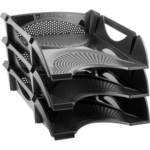 Горизонтальний лоток для документів виконаний з високоякісного первинного пластику. Кожен лоток витримує навантаження 2,5 кг, або 500 аркушів паперу щільністю 80 г/м2. Лотки компактно складаються один в один, за рахунок цього їх зручно зберігати і транспортувати. Стильний дизайн корпусу виконаний у чорному кольорі.