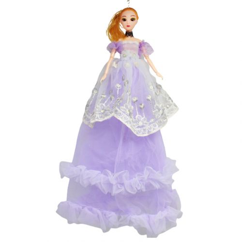 Лялька в красивій довгій сукні. Спідниця складається з 3-х шарів ситцевої тканини. Висота ляльки – 28 см, довжина іграшки разом із сукнею – 50 см. Верхній шар сукні прикрашений гарною машинною вишивкою із квітами. Руки гнуться у суглобах. До голови ляльки прикріплено кільце на ланцюжку, завдяки якому її можна використовувати як прикрасу для інтерʼєру..