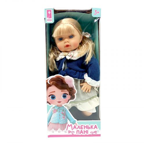 Лялька “Маленька Пані”. Це витончена іграшка у вигляді справждьої леді та любительниці моди! Одягнута в миленьку сукню з вʼязаним кардеганом та шкарпетками. Має рухливі частини тіла: руки, ноги та голова ляльки можуть змінювати положення, що робить гру ще більш цікавою. Скляні очі: лялька має виразні очі, виготовлені зі скла – вони виглядають дуже натурально та надають іграшці особливої чарівності. Українська озвучка: лялька говорить, співає пісеньки, читає віршики та розповідає казки приємним голосом. Виконана з якісних та міцних матеріалів, буде чудовим подарунком дитині. В комплеткі присутнє свідоцтво про народження щоб дати ляльці імʼя та дізнатися більше про іграшку.