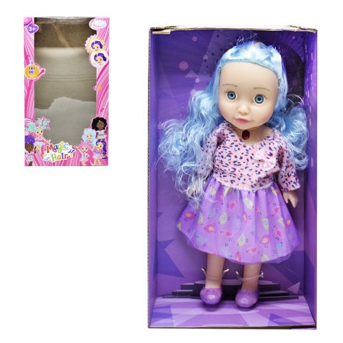 Мила лялька в красивому вбранні буде відмінним подарунком дитині. У ляльки довге яскраве волосся. Рухливі руки і ноги. Якщо натиснути на кнопку (прикраса на шиї) – лялька співатиме пісню. Висота ляльки – 32 см. Виконано з якісного і безпечного матеріалу. Для дітей від 3-х років.