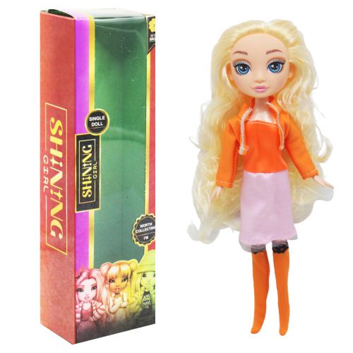 Яскрава лялька стане чудовим подарунком дитині. Висота іграшки 24 см. Одягнена у красивий модний костюм. У іграшки яскраве довге волосся. У ляльки рухливі ноги та руки. Виконана із якісних матеріалів. Для дітей віком від 3-х років.