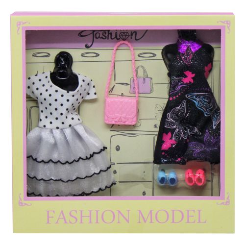 Дивовижний набір включає дві елегантні сукні, стильну сумочку і модне взуття, щоб ваша лялька завжди була в центрі уваги! Набір не тільки урізноманітнить гардероб вашої ляльки, а й дозволить маленьким модницям втілити свої творчі ідеї у світі лялькової моди!