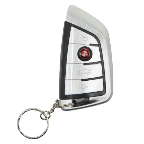 Брелок для ключів з ліхтариком. Виконаний у вигляді автомобільних ключів. Виготовлено з пластику. Для увімкнення ліхтарика треба натиснути на кнопку. Є два режими: звичайний та блимаючий.