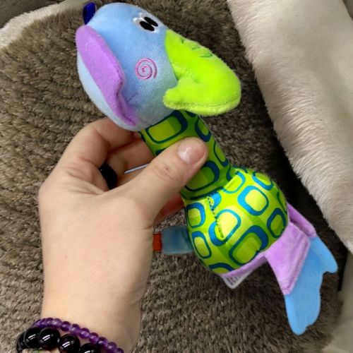 Мʼяка іграшка-брязкальце у вигляді кумедного звірятка. Іграшка приємна на дотик і дуже гладенька. Усі шви міцні та надійні. Розмір – 17,5х7х6 см. Ігри з плюшевими іграшками чудово розвивають у малюка уяву, фантазію, сюжетно образне мислення. Виконані з якісних та міцних матеріалів. Для дітей з перших років життя.