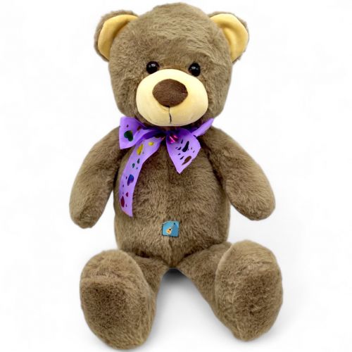 Мʼяка іграшка у вигляді милого ведмедика з бантиком. Іграшка дуже приємна на дотик та трошки кошлата. Усі шви міцні та надійні. Розмір – 45х23х15 см, розмір за стандартами – 52 см. Також іграшка оснащена звуковим модулем (відтворює пісеньку українською). Ігри з плюшевими іграшками чудово розвивають у малюка уяву, фантазію, сюжетно-образне мислення. Виконано з якісних та міцних матеріалів. Для діток старше 3-х років.