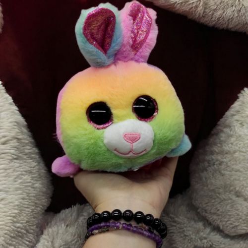 Мʼяка іграшка “Веселковий Зайчик” розміром 17 см – це яскраве і чарівне зайченя, виконане з мʼяких матеріалів. Його різнокольорове забарвлення нагадує веселку, а великі вушка, очі і миле личко роблять іграшку особливо привабливою. Відмінний вибір для дітей та колекціонерів, ця іграшка стане справжнім другом для малюка та прикрасою дитячої кімнати.
