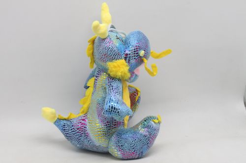 Мила мʼяка іграшка у вигляді кумедного дракончика з різнобарвною блискучою лускою. Іграшка мʼяка і приємна на дотик, виготовлена з якісних матеріалів. Очі вишиті на тканині. Іграшка щільно набита синтепоном та добре тримає форму. Розмір іграшки: 30 х 20 х 20 см. Іграшка буде чудовим подарунком дитині будь-якого віку.