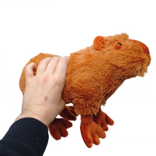 Чарівна мʼяка іграшка у вигляді пухнастої капібарі. Виконана з дуже мʼяких та приємних на дотик матеріалів, має міцні та надійні шви. Очі пластикові Мʼяка капібара обовʼязково порадує і порадує як дітей, так і дорослих. Розмір іграшки: 33х22х10 см. Виготовлено в Україні.